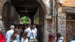 il famoso balcone, in basso a sinistra si intravvede tra la calca dei turisti la statua di Giulietta