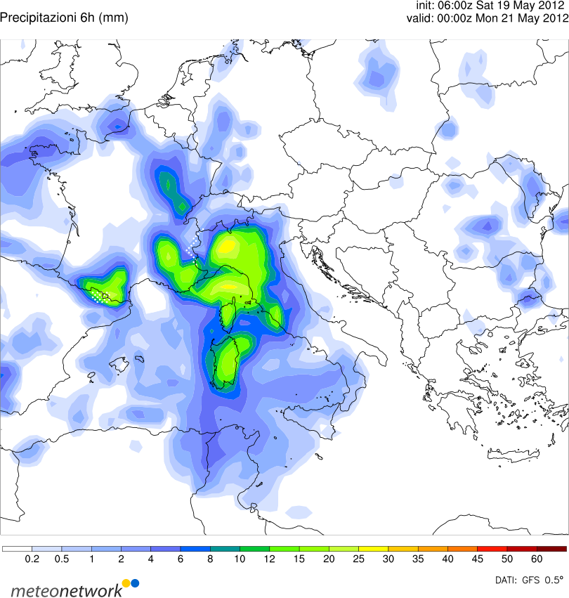 in qusesto caso le precipitazioni accumulate in 6h alle 00z di lunedì