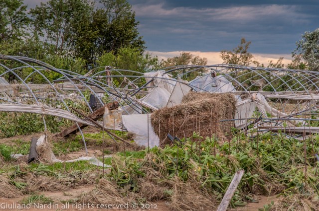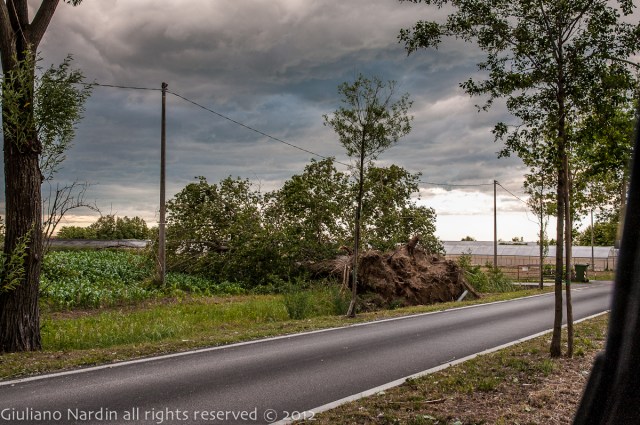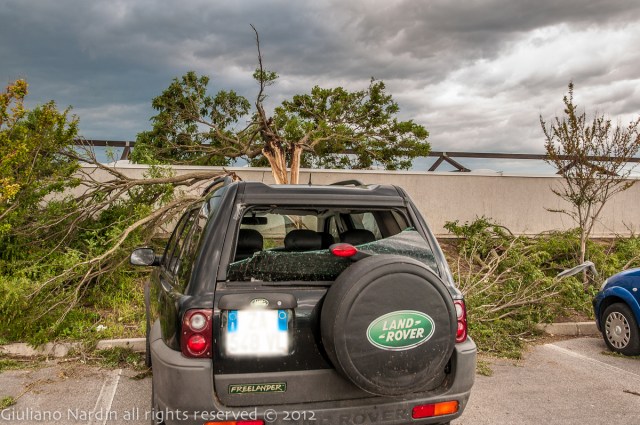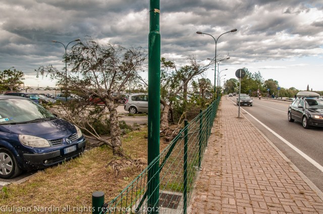 Danni da raffica verticale, provocati dalla stessa supercella in località Jesolo via roma destra all’altezza del civico 54 -56 ore 12 circa.