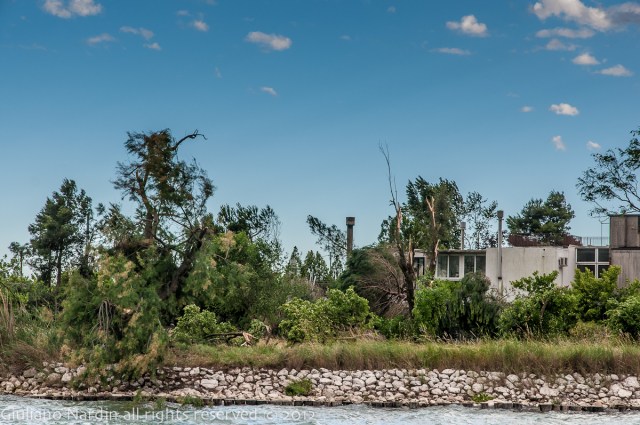 Il tornado prosegue sull’isola delle Vignole (4) e di Sant’Erasmo (5) per poi andare verso Punta Sabbioni (6) dove riuscirò a fotografarlo dalla motonave, posizione (2) .