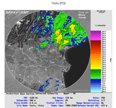 Come previsto qualche cella temporalesca ha transitato oggi nel veneto, sfiorando la laguna di Venezia dirigendosi verso il Friuli, senza portare precipitazioni.