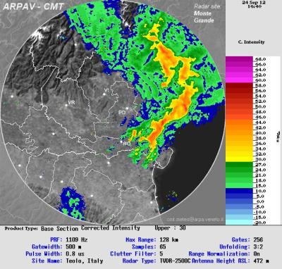 24 settembre 2012 , tardo pomeriggio, una squall line transita da ovest verso est sulla costa Veneta