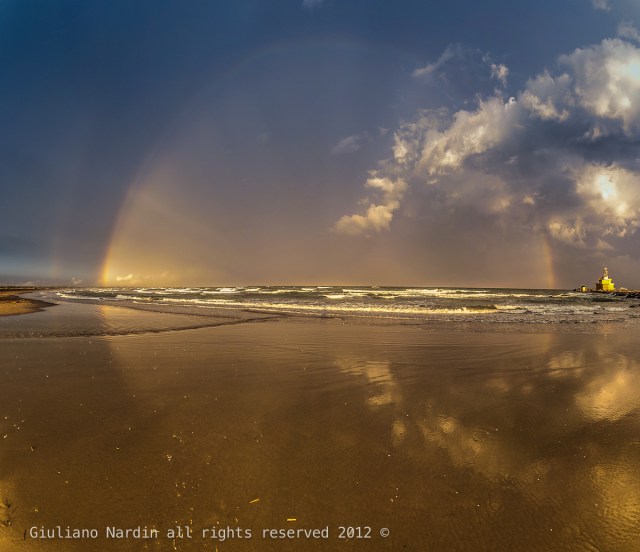 appena la linea temporalesca se ne và verso il mare , compare un arcobaleno doppio completo