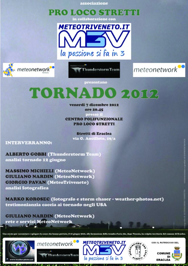 Venerdì 7 dicembre 2012 alle ore 20.45, presso il centro polifunzionale di Stretti di Eraclea (VE), in collaborazione con l’Associazione Pro Loco Stretti, Thunderstorm Team, Wheater-Photos.net, con il patrocinio del Comune di Eraclea,