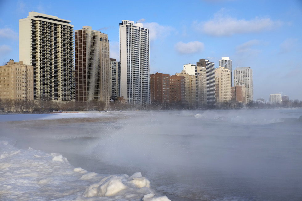 Il lago Michigan a Chicago, Illinois, 5 gennaio 2015.