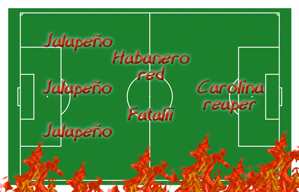 Attacco: il bomber in assoluto, il “Carlitos” dei peperoncini piccanti Carolina reaper, nel 2013 entrato nel Guinness dei primati come il più piccante del mondo.