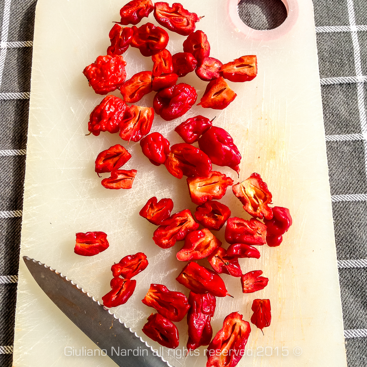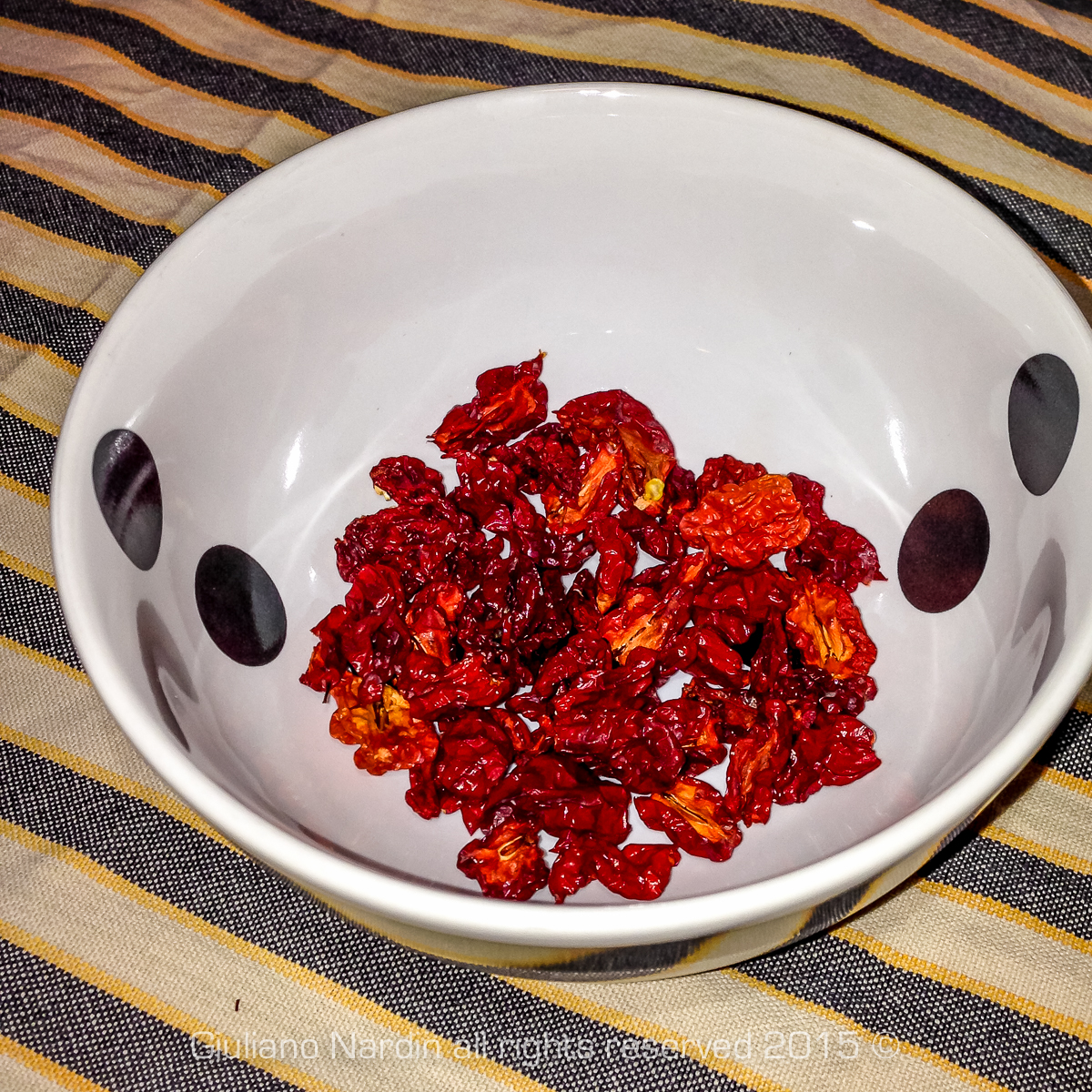 “Carolina Reaper” essiccati, sotto vetro.