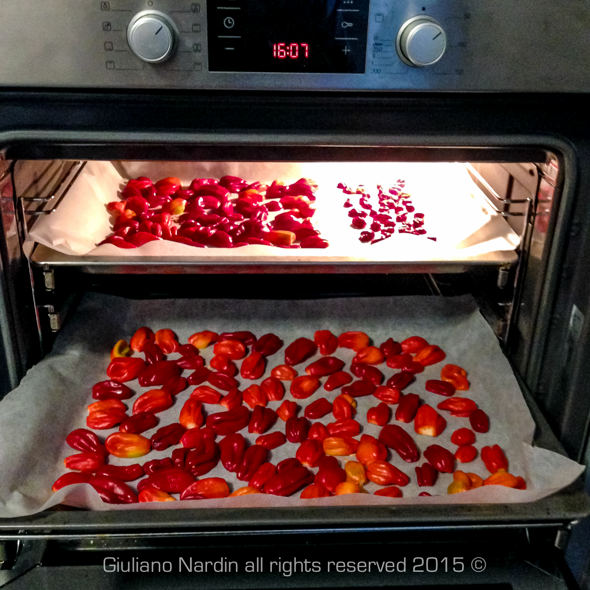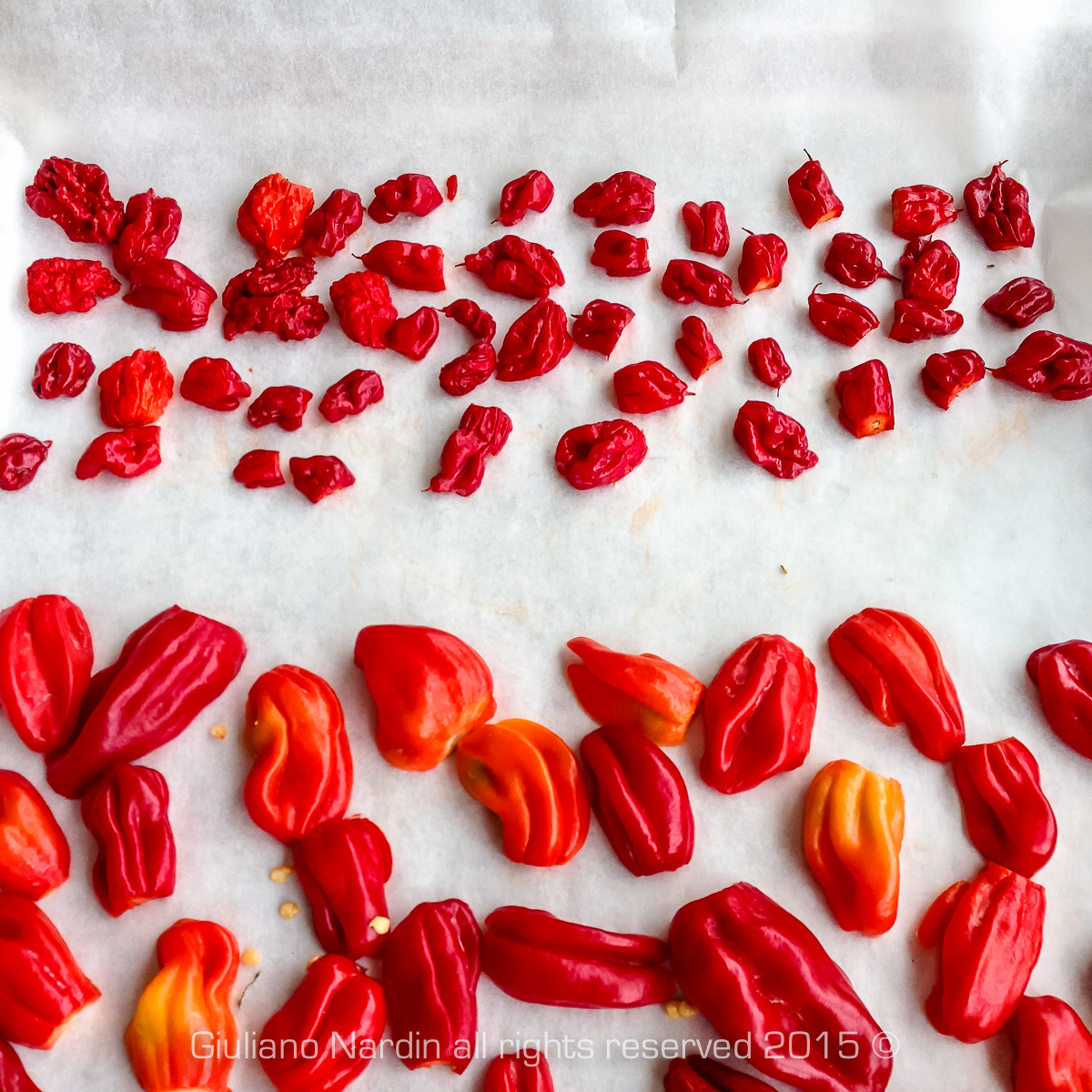 Riposti sulla carta forno, parte superiore, sotto ci sono degli Habanero Red.