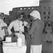 Policeman Receives Immunization Shot, Qatif, 1950s. Photo by T.F. Walters