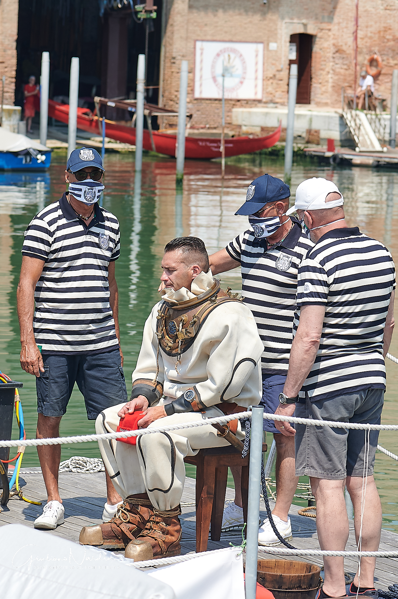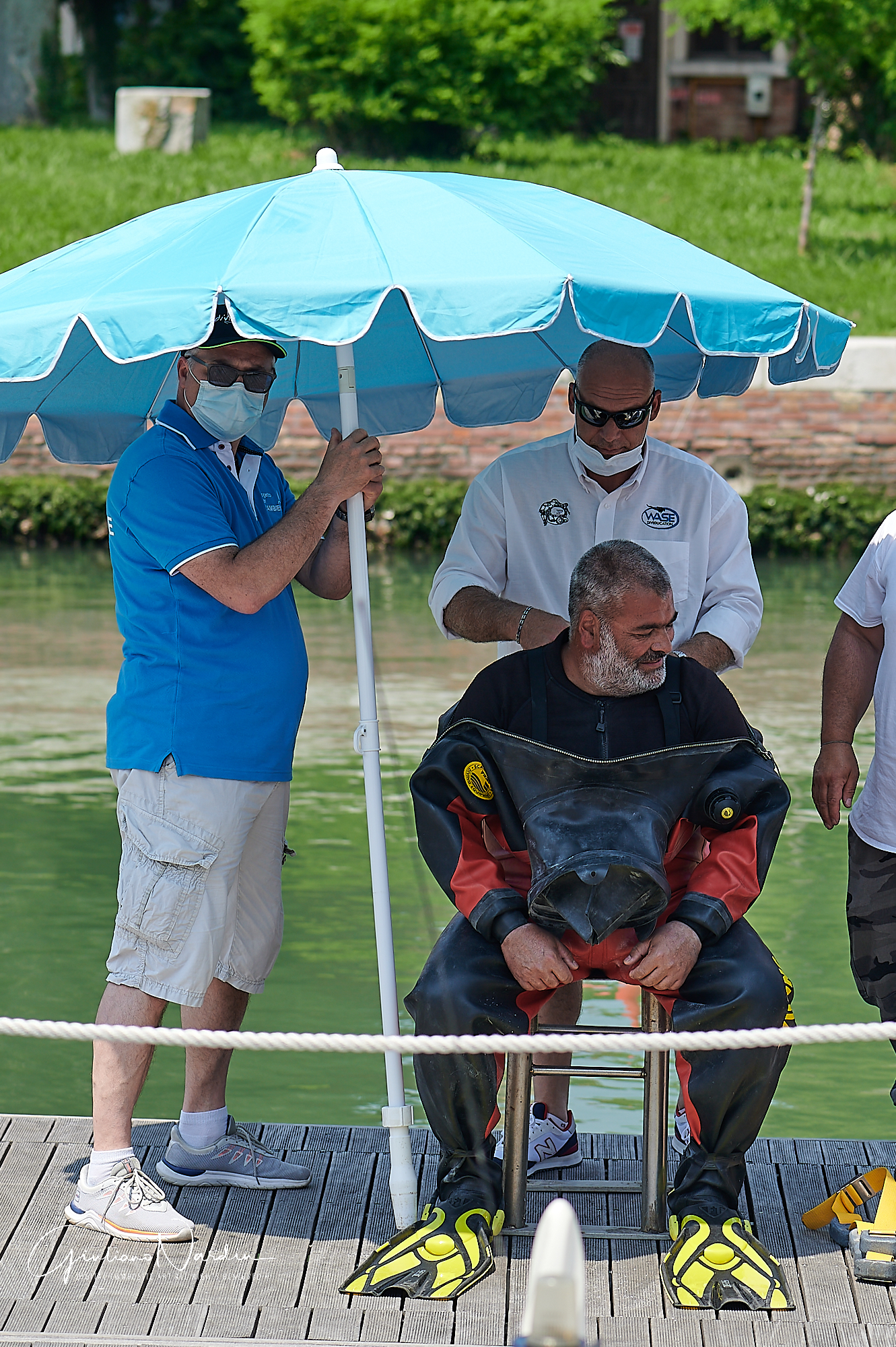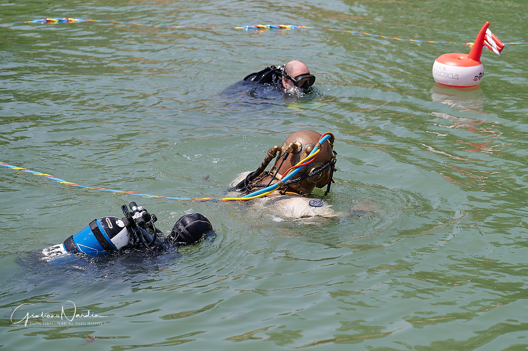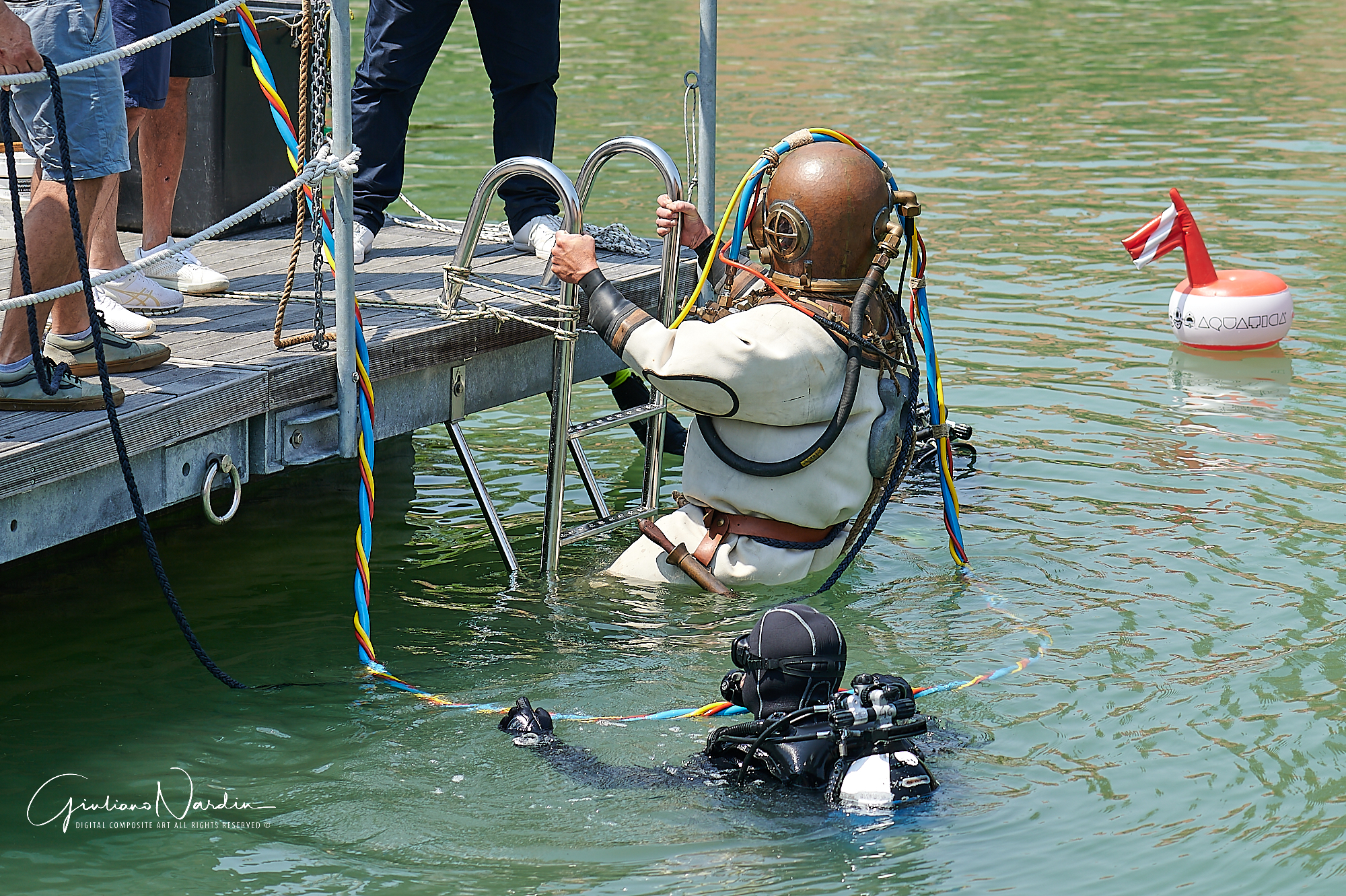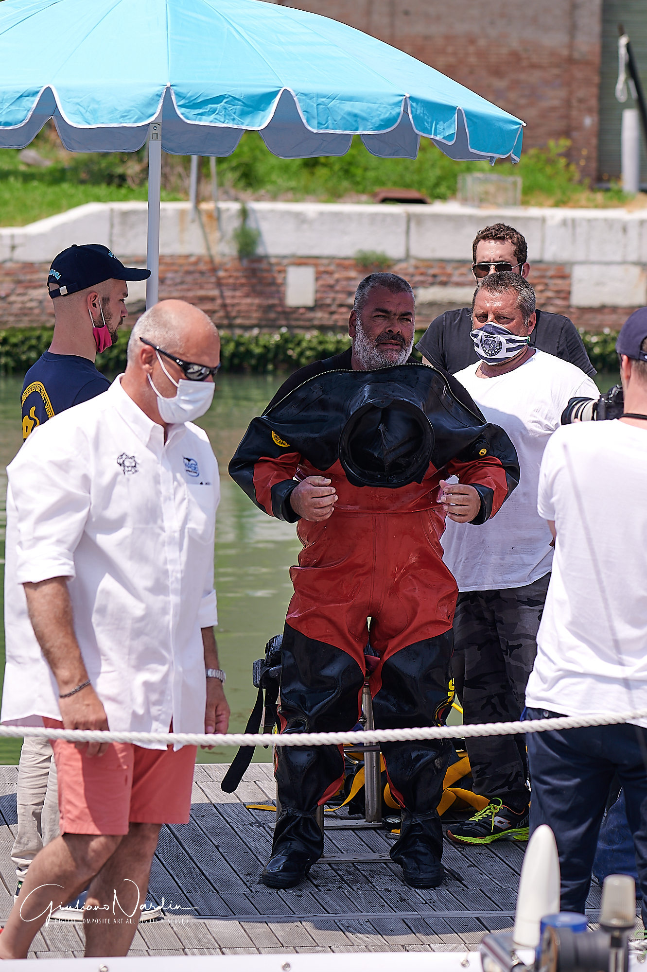 “Immersioni con caschi professionali”, “Aquatica” e “Club Subaqueo San Marco” si sono immersi a scopo dimostrativo nelle acque dell’Arsenale di Venezia, in Rio delle Galeazze, con attrezzatura d’epoca e moderna per rievocare le antiche tecniche di immersione e raccontare al pubblico come, oggi, lavorano questi professionisti della subacquea per ripulire le acque e contribuire alla protezione dell’ambiente lagunare.