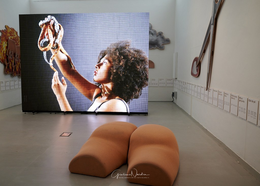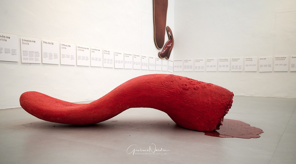 Jonathas de Andrade basa il proprio lavoro sul suo profondo interesse per una cultura autenticamente “popolare”. L’installazione si compone di un elenco di espressioni idiomatiche e proverbi che attingono alle metafore sul corpo umano e di una serie di opere d’arte che danno vita alla straordinaria carica poetica di questi detti, rendendoli tangibili. Due immense orecchie poste all’ingresso e all’uscita del Padiglione alludono all’espressione popolare Entrar por um ouvido e sair pelo outro, consentendo ai visitatori di “entrare da un orecchio e uscire dall’altro”, mentre un pallone gonfiabile, che riempie lo spazio in vari momenti della giornata, fa riferimento a un’altra espressione: Coração saindo pela boca (Con il cuore in gola). Nel complesso, le opere costituiscono un elenco parziale e allusivo, ma fortemente fisico, delle sensazioni provate da un immaginario corpo brasiliano, tradotte in espressioni dirette e talvolta divertenti, tuttavia capaci di catturare e trasmettere il momento storico che stiamo vivendo in tutta la sua complessità.