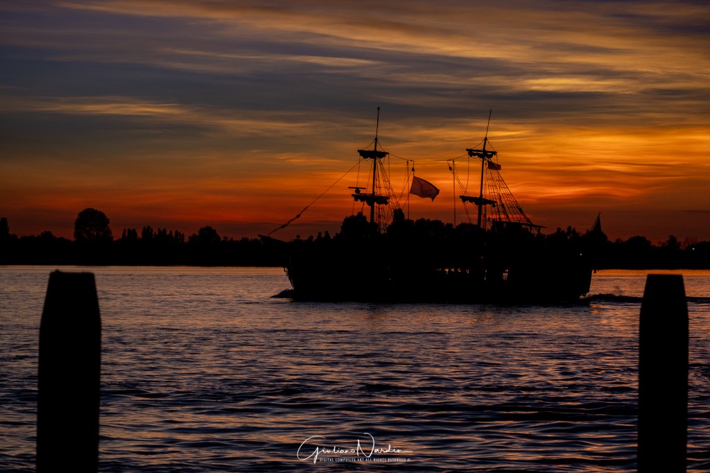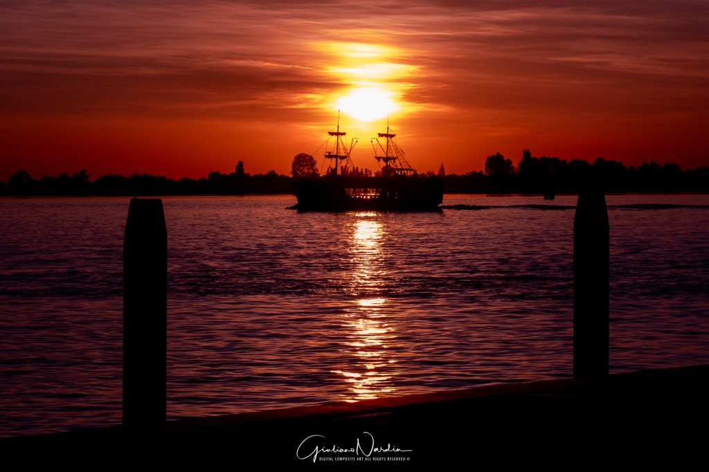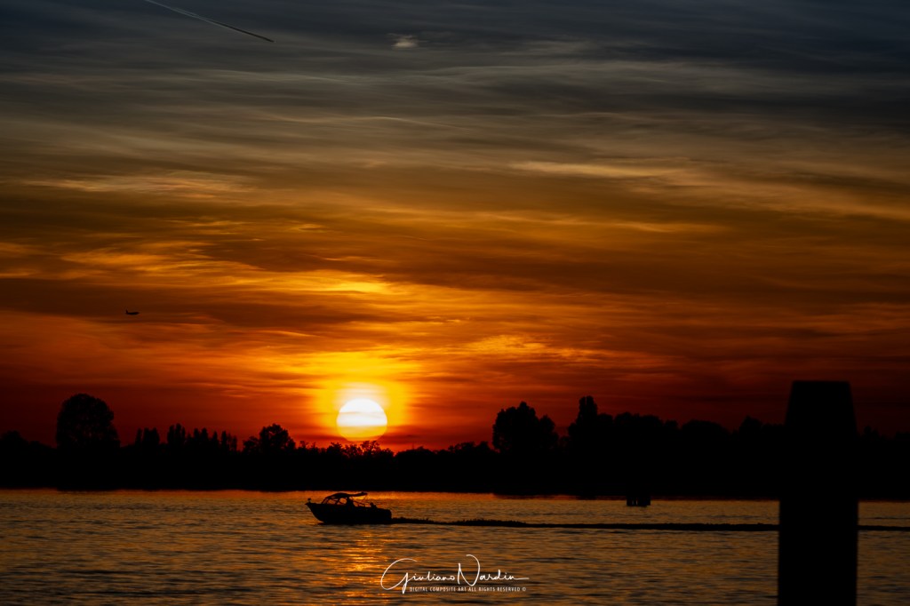 Il tramonto sulla laguna di Venezia regala uno spettacolo di colori caldi e riflessi dorati sull’acqua. Le silhouette delle barche si stagliano dolcemente, creando un’atmosfera magica e senza tempo, che incanta chiunque si fermi ad ammirare questo incanto naturale.