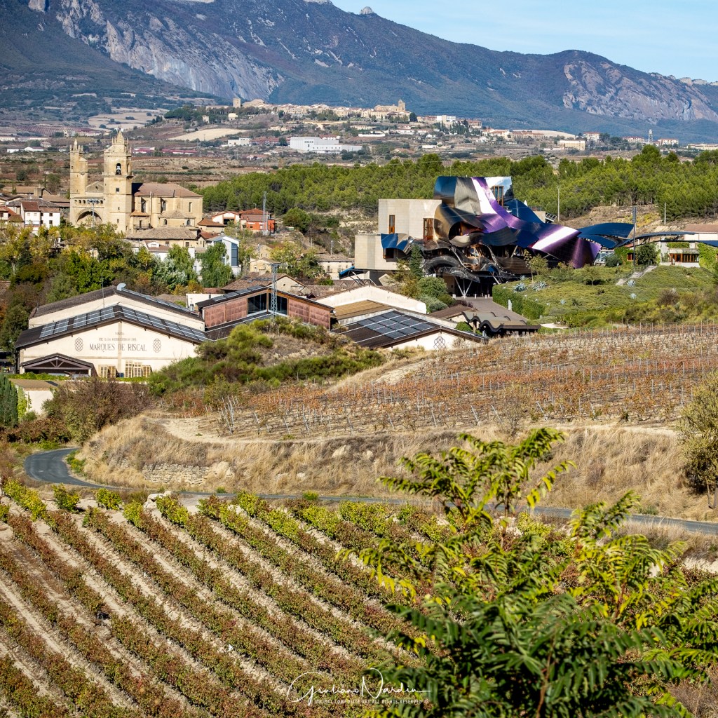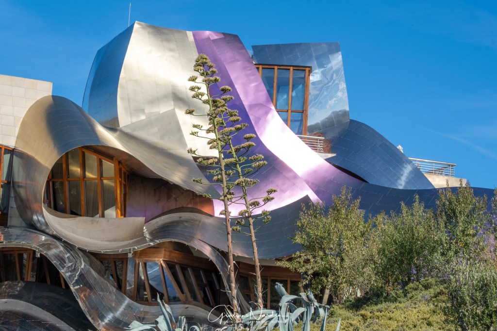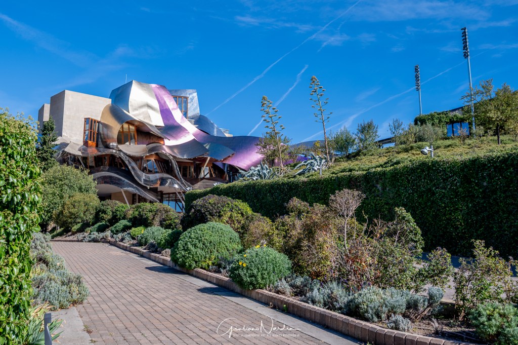 Se la tua galleria fotografica potesse parlare, racconterebbe la storia di una visita indimenticabile a Bodegas de los Herederos del Marqués de Riscal, giustamente eletta “World’s Best Vineyard 2024”! Questa storica cantina della Rioja, fondata nel 1858, è un pioniere dell’enologia spagnola, noto per aver introdotto tecniche bordolesi all’avanguardia.