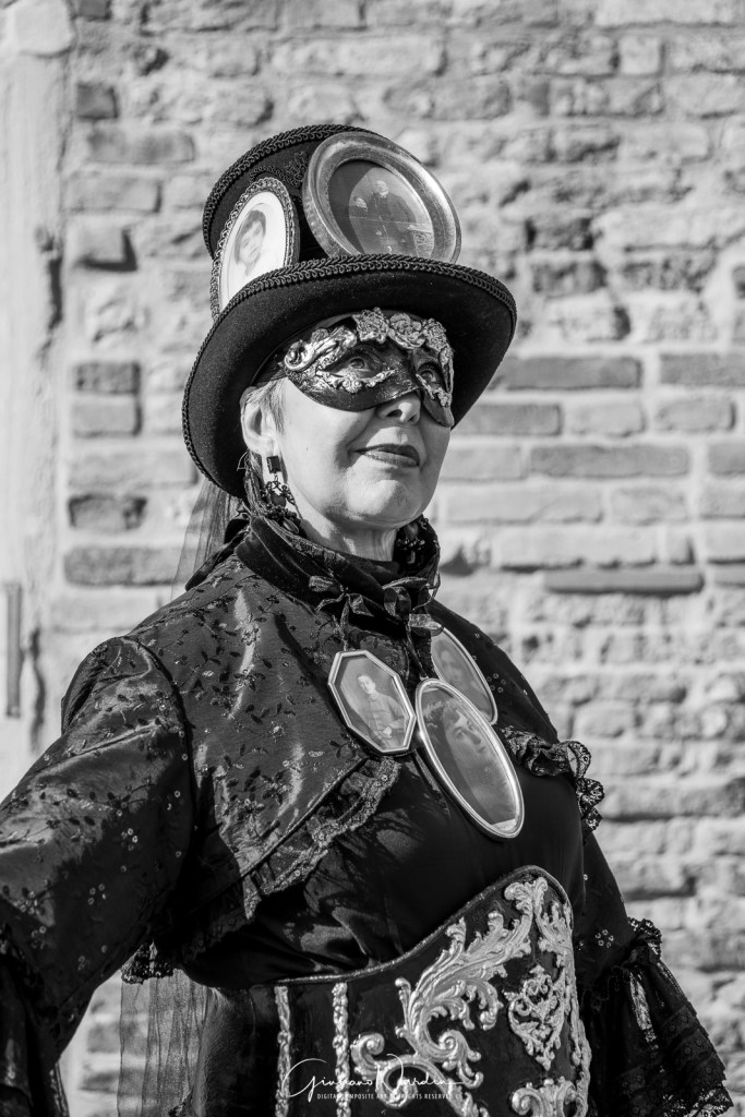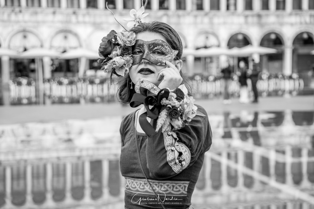 Venice Carnival is more than an event; it’s a timeless illusion. Through my lens, I captured the elegance of costumes and the mystery of gazes. In the following galleries, you’ll find solo masks, couples in harmony, and intense close-ups. I chose black and white to highlight textures and vibrant color to celebrate tradition. Each shot is a fragment of Venetian history.