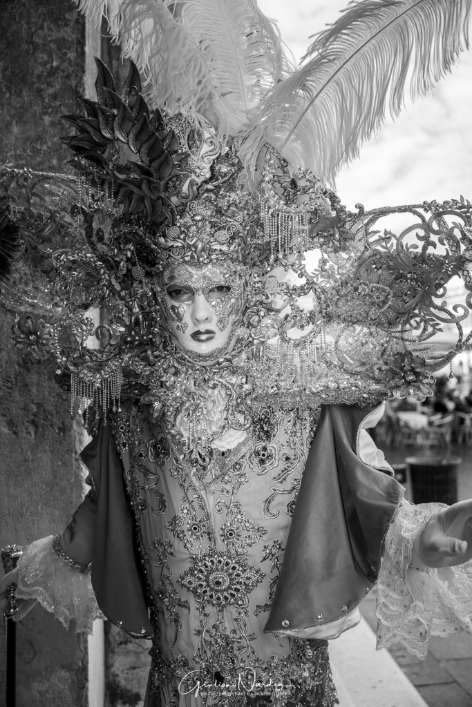 Il Carnevale di Venezia non è solo un evento, è un’illusione senza tempo. Attraverso il mio obiettivo, ho cercato di catturare l’eleganza dei costumi e il mistero degli sguardi. Nelle gallerie che seguono, troverete maschere singole, coppiein armonia e primi piani intensi. Ho scelto il contrasto del bianco e nero per esaltare le forme e il colore vibrante per celebrare la tradizione. Ogni scatto è un frammento di storia veneziana.