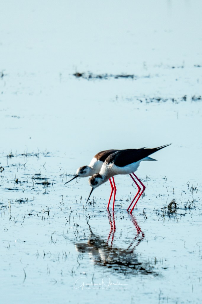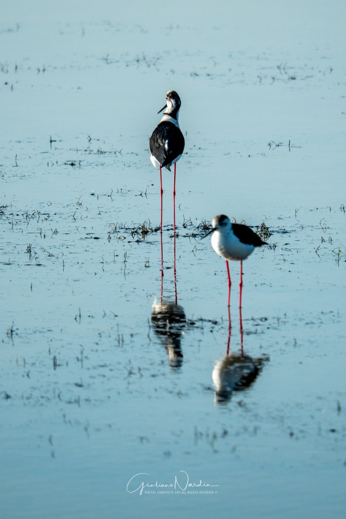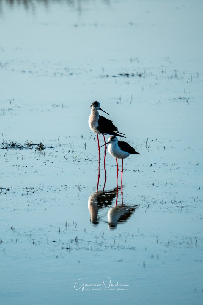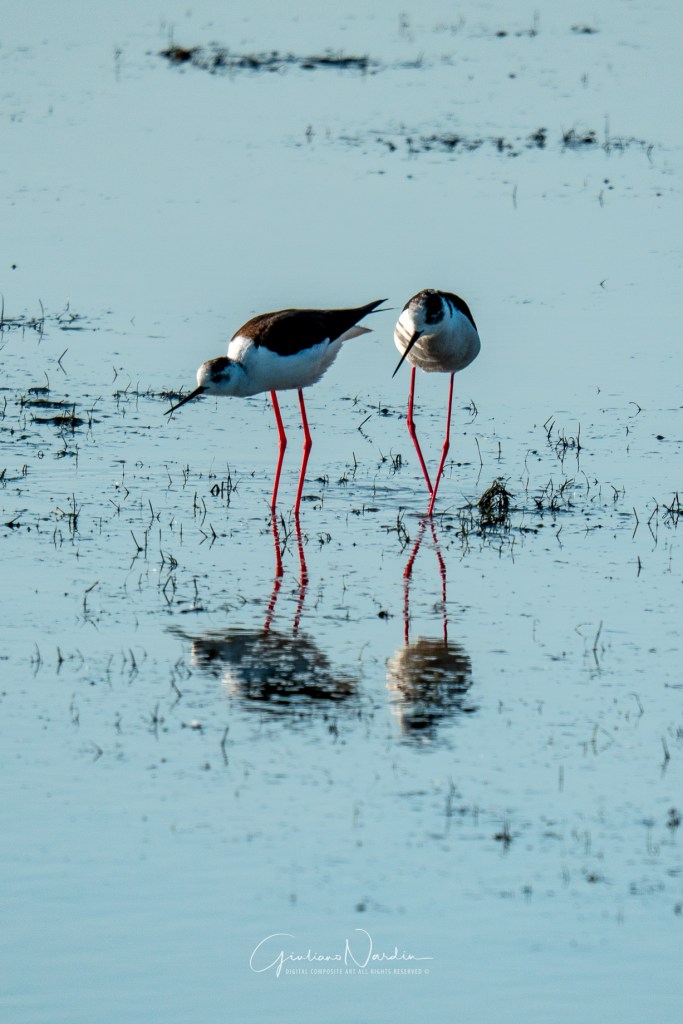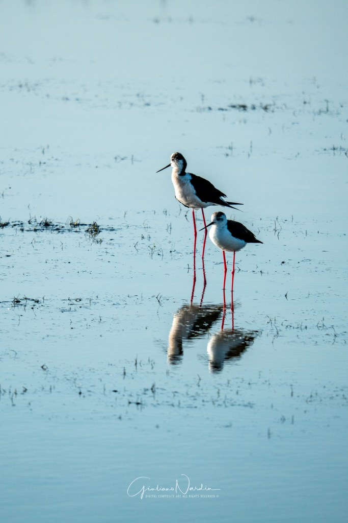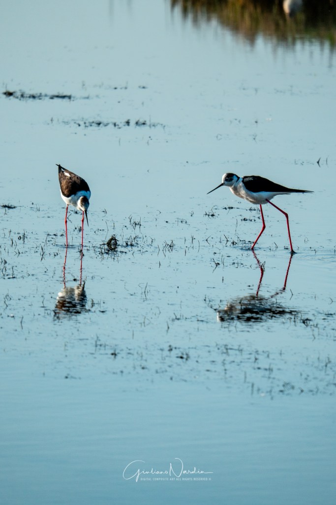 There is a magical moment in the early morning when the Venetian lagoon stops being just water and mud and becomes a perfect mirror. Yesterday morning, among the canals and salt marshes of Lio Piccolo, I had the privilege of closely following a pair of Black-winged Stilts. These shots capture the synergy and grace of a species that seems to dance on the water’s edge.
