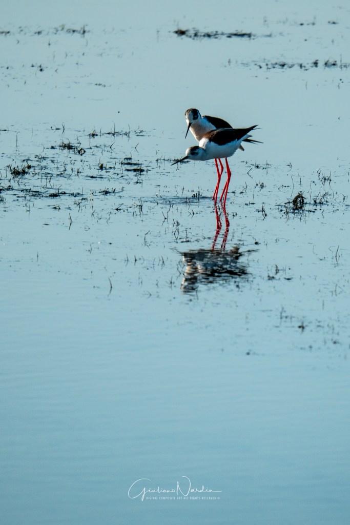 C’รจ un momento magico, nelle prime ore del mattino, in cui la laguna di Venezia smette di essere solo acqua e fango per diventare uno specchio perfetto. Ieri mattina, tra i canali e le barene di Lio Piccolo, ho avuto il privilegio di seguire da vicino una coppia di Cavalieri dโItalia. Questi scatti catturano la sinergia e la grazia di una specie che sembra danzare sul filo dell’acqua.